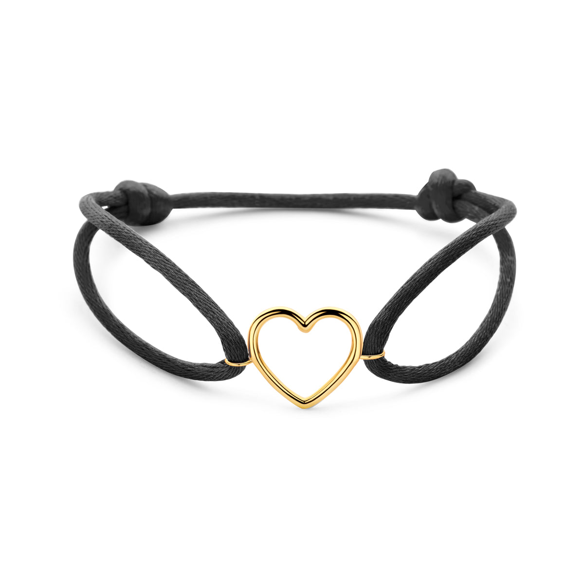 Satijn Armband met 14k Geelgouden Hartje – Verstelbaar 13–26cm