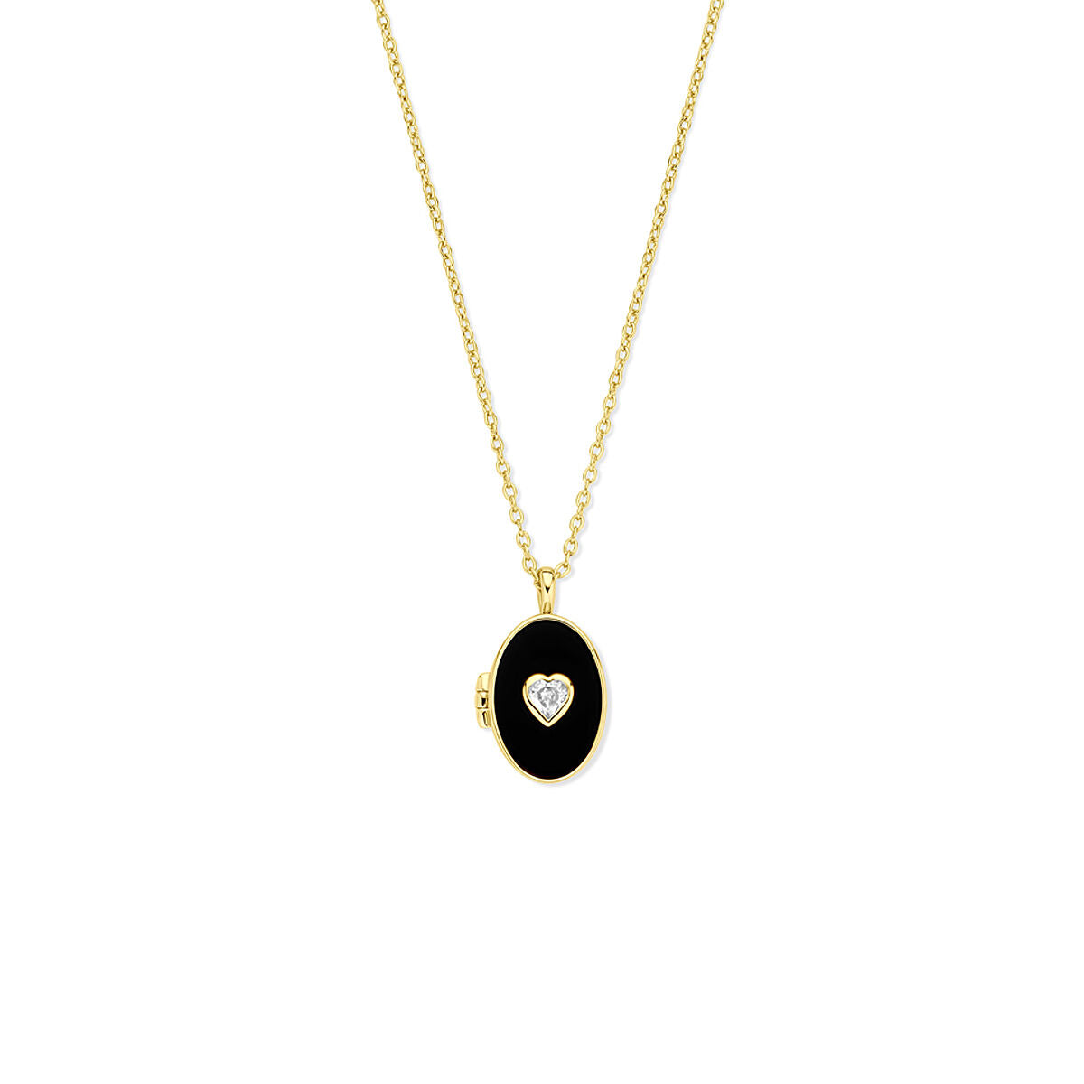 Verguld Zilveren Ketting met Hart Medaillon – Parelmoer – 42+3 cm