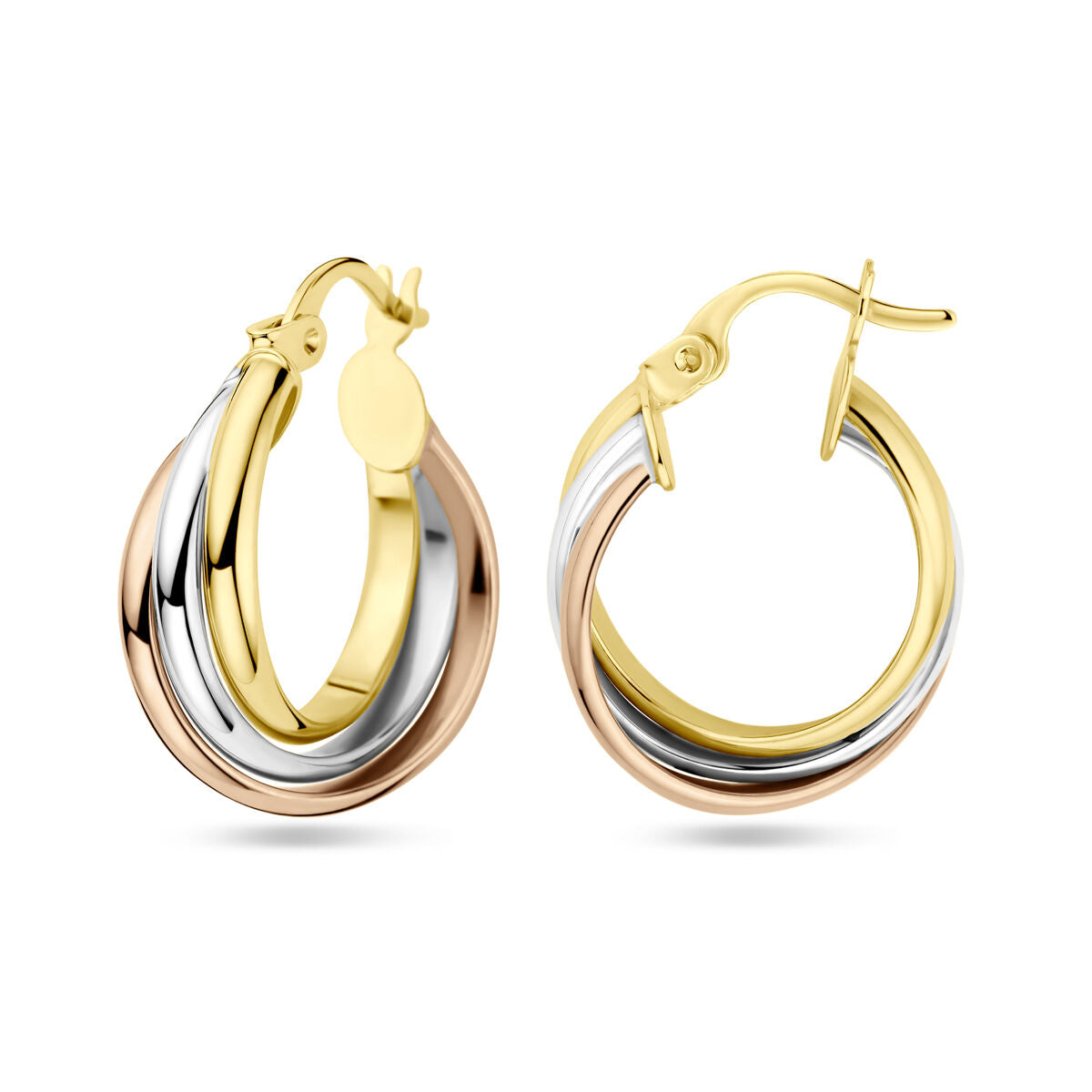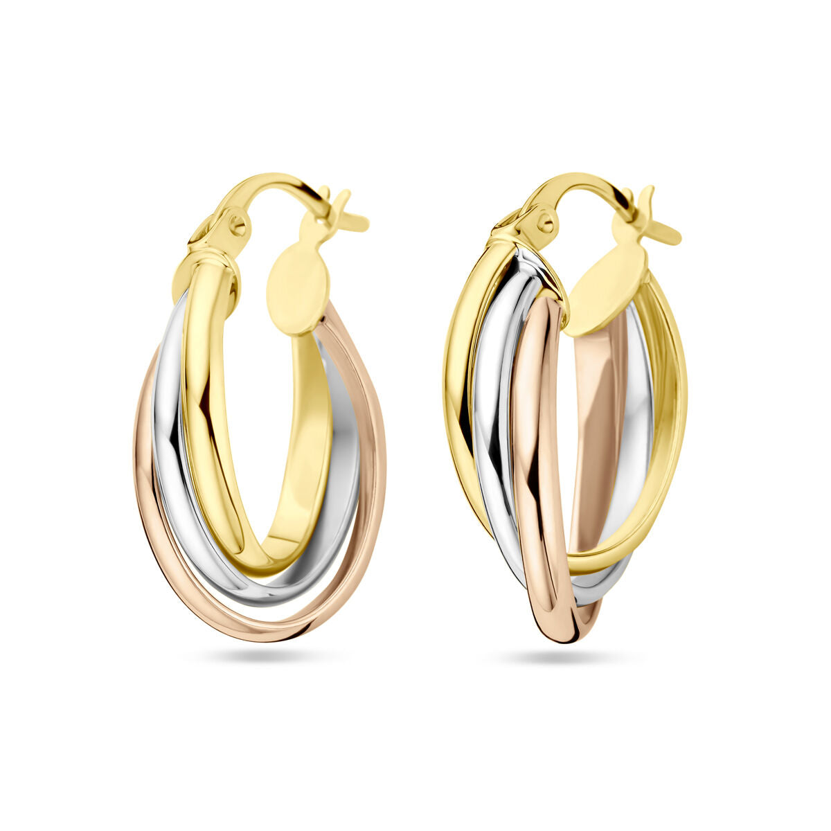 14k Tricolor Gouden Oorringen Rond 22,5x6.5mm – Wit, Rosé & Geel