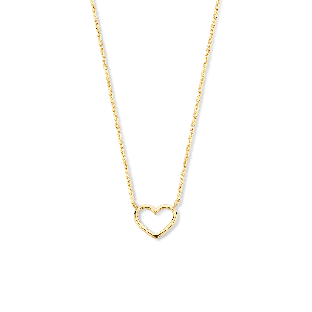 Dit elegante 14k geelkleurige collier is uitgevoerd met een verfijnd hartje en straalt eenvoud, romantiek en tijdloze charme uit. Het subtiele ontwerp maakt dit collier perfect voor dagelijks gebruik, maar ook zeer geschikt om te dragen bij speciale gelegenheden.