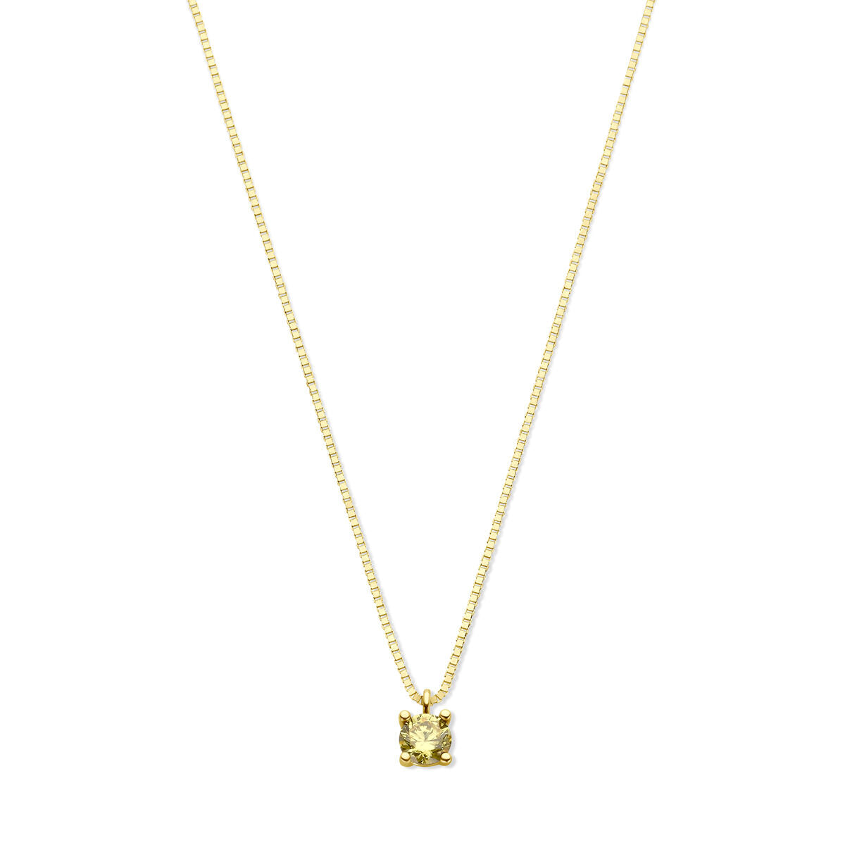 Dit verfijnde 14k geelgouden collier is uitgevoerd met een warme, goudgele synthetische citrien, de geboortesteen van november. Het collier heeft een draaglengte van 42 cm met een extensie van 2 cm, waardoor het moeiteloos verstelbaar is. De fijne schakelbreedte van 0,7 mm en de duurzame karabijnsluiting zorgen voor een elegante en comfortabele draagervaring. Een betekenisvol sieraad dat perfect is als persoonlijk cadeau of als stijlvolle toevoeging aan je sieradencollectie.