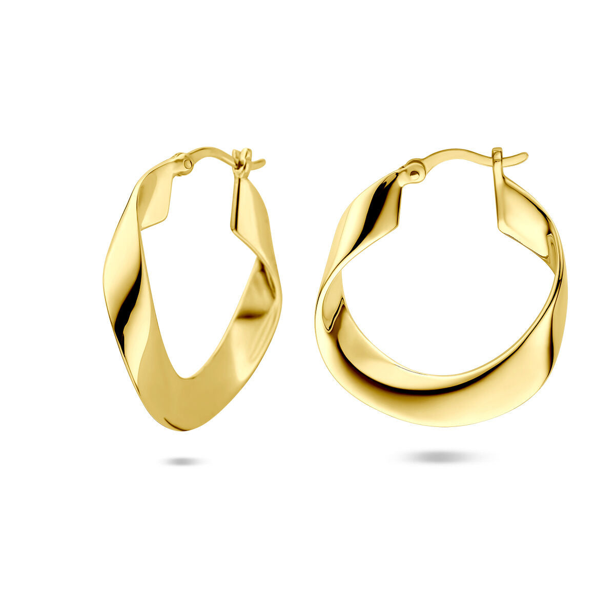 Deze stijlvolle 925 zilveren oorringen zijn verguld met 1 micron geelgoud en hebben een afmeting van 25x4,5mm. De gepolijste afwerking geeft de oorbellen een luxe glans, terwijl het ronde design zorgt voor een tijdloze uitstraling. Dankzij hun formaat zijn ze ideaal voor zowel dagelijks gebruik als feestelijke gelegenheden. Let op: er is geen garantie op de plating. Een veelzijdig en elegant sieraad dat een moderne en verfijnde touch toevoegt aan iedere sieradencollectie.