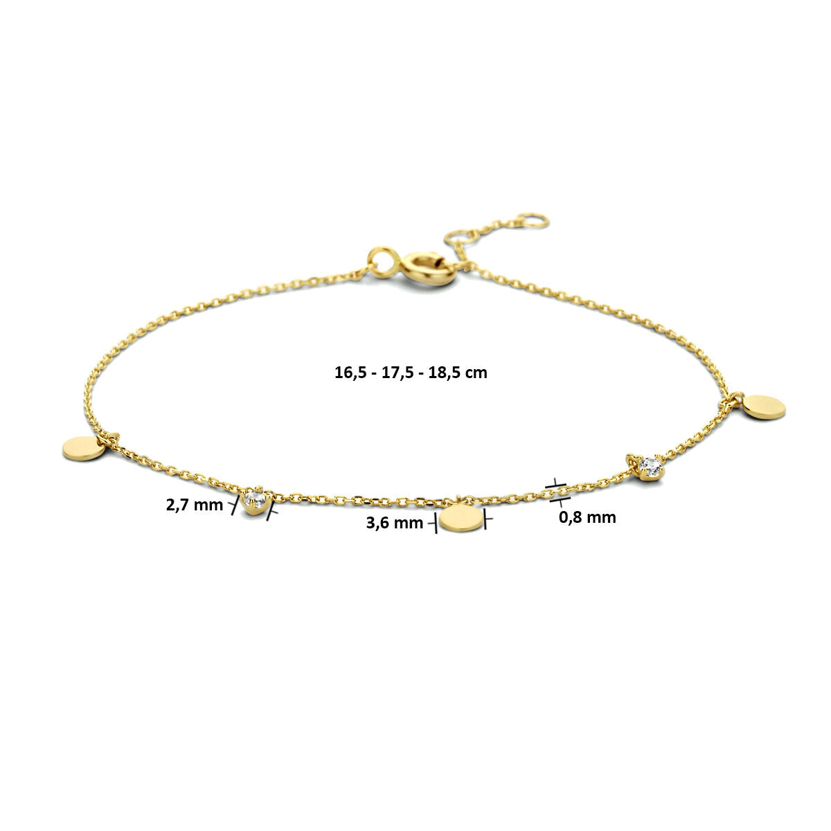 Deze elegante 14k geelgouden armband is verfijnd uitgevoerd met een sprankelende peridot. De verstelbare draaglengtes van 16,5 tot 18 cm zorgen voor een perfecte pasvorm. Met een schakelbreedte van 1,2 mm en een betrouwbare karabijnsluiting combineert dit sieraad stijl en duurzaamheid. Een tijdloos en luxueus ontwerp, ideaal voor zowel dagelijks gebruik als speciale gelegenheden.