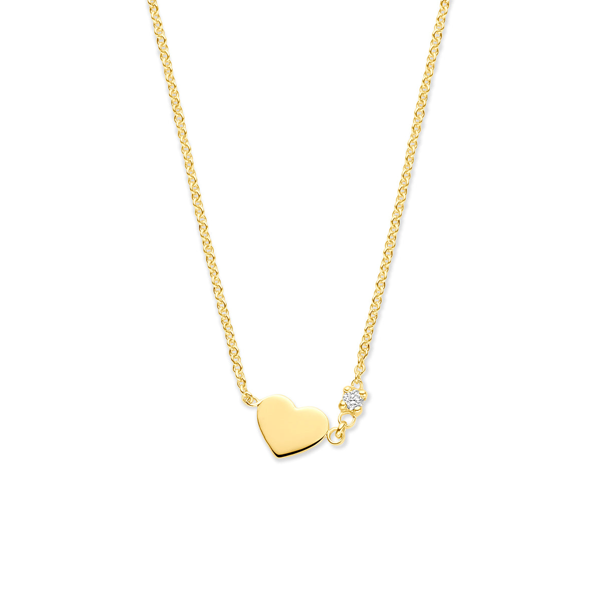 14k Geelgouden Collier met Hartje en Diamant – Verstelbare Lengte (40–44cm)